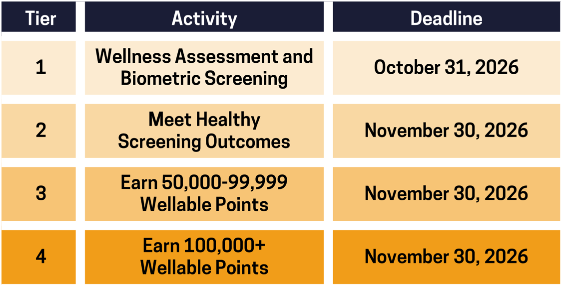 If you are an employee not enrolling in the medical plan for 2026 and complete all 4 tiers, you will earn an exciting one-time reward!